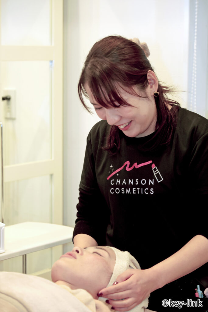 乾燥対策や紫外線対策といった日々のケア、メイクのコツなども、会話をしながら丁寧に伝えています。