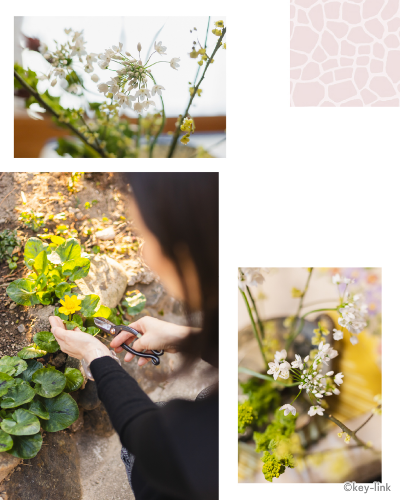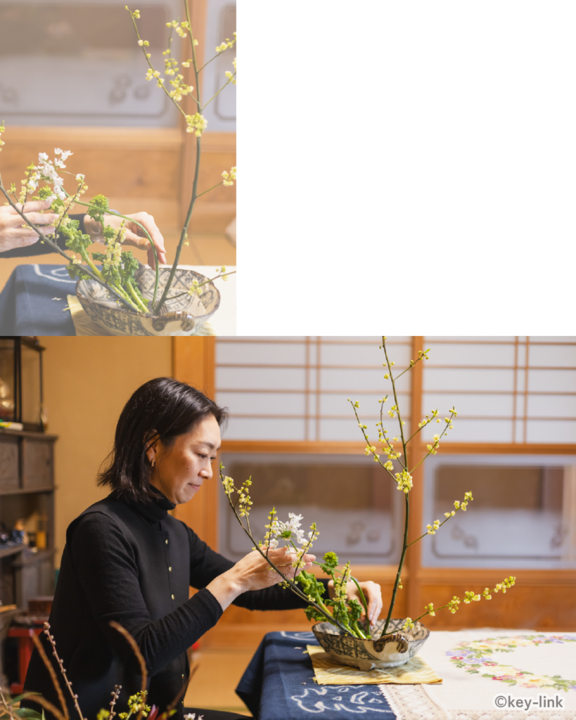 「80歳のおばあちゃんになっても続けられる」と、今では生け花がライフワークに。インテリアデザイナーとして培った過去も生きています。「インテリアと同じように、花も空間をつくり出す大きな要素。花が空間を変え、景色を変える。今は“花を通して空間をつくる”人になりたいと思っています」