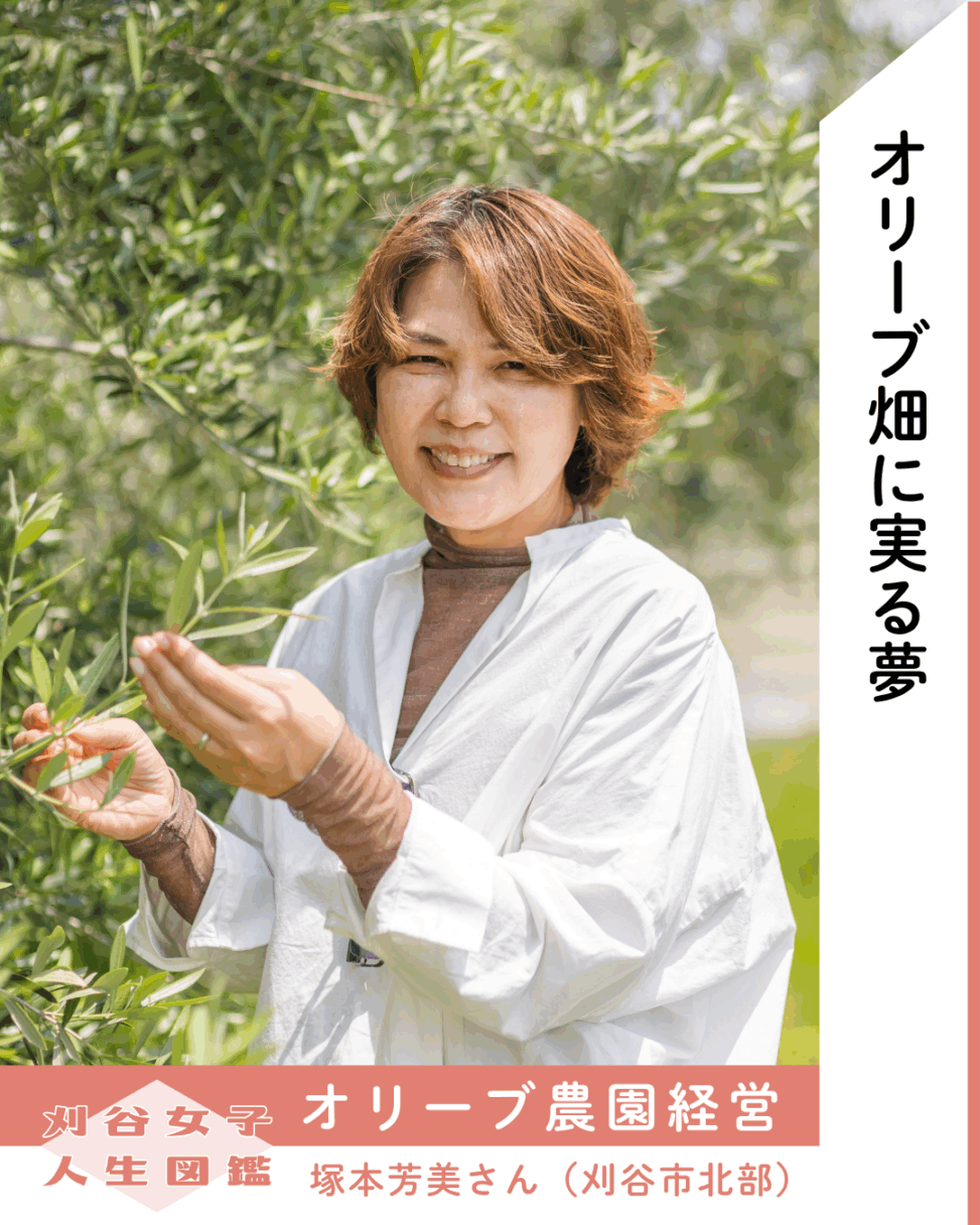刈谷市北部ののどかな田園風景の中に、塚本芳美さんが営むオリーブ農園「今川オリーブ ドゥルドゥ」(今川町)はあります。